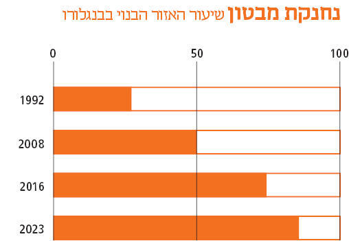 לפי נתוני חברת ייעוץ הנדל"ן Knight Frank, במחצית הראשונה של השנה נקנו או הושכרו בבנגלורו חללי משרדים בשטח כולל של 1.7 קמ"ר, כמחצית מהגודל של סנטרל פארק. מדובר ביותר משליש מכלל עסקאות הנדל"ן שבוצעו בהודו כולה באותה התקופה. מספר חוזי השכירות למשרדים בחצי השנה הזו עקף את מספר החוזים שנחתמו בבנגלורו במשך 2024 כולה. הביקוש הזה חונק את בנגלורו. בכל שנה העיר מוכה בהצפות ומזג האוויר הולך ומתחמם בגלל משבר האקלים והצטמצמות הריאות הירוקות – זאת בזמן שהפיתוח שלה מפגר מאוד אחרי קצב הצמיחה של האוכלוסייה.