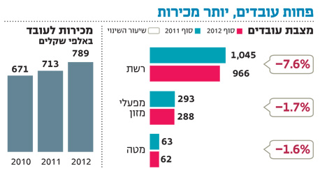 רשת המזון דיווחה על עלייה של 3% במכירות חנויות זהות, והגיעה למכירות של 859.4 מיליון שקל ב־2012. הרווח התפעולי זינק ב־52.5% לעומת 2011, ל־21.1 מיליון שקל. במהלך 2012 הובילה החברה מהלכי התייעלות שכללו גם צמצומי עובדים: מצבת עובדי הרשת ירדה ב־7.6% ועמדה, נכון לסוף 2012, על 966 עובדים, ואילו מפעלי החברה העסיקו נכון לסוף השנה 288 עובדים - ירידה של 1.7%. הרווח הנקי המיוחס לבעלי המניות של הקבוצה כולה עמד על 16.7 מיליון שקל, עלייה של 11.7% לעומת 2011.