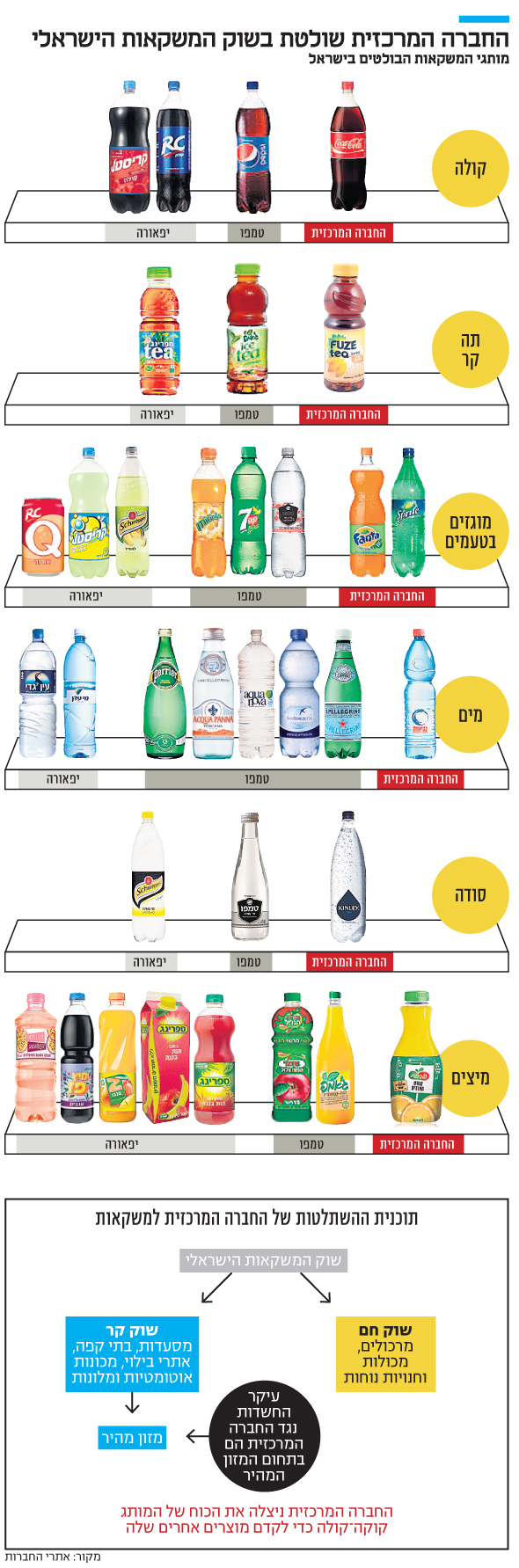 בסוף חודש נובמבר צפויים להגיע למשרדי רשות ההגבלים העסקיים בירושלים נציגי החברה המרכזית למשקאות קלים – הזכיין הבלעדי של מותגי קוקה-קולה בישראל, ואחד המונופולים החזקים בישראל. בדיוק כמו לפני כשלוש וחצי שנים, אז נפתחה נגד החברה חקירה פלילית בחשד שניצלה לרעה את כוחה המונופוליסטי כדי לנסות לחבל בתחרות בשוק המשקאות הקלים, גם הפעם לא יהיה מדובר בביקור נימוסים.