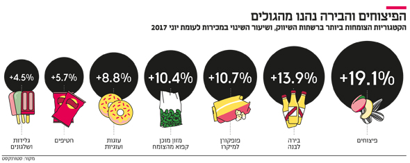 מכירות הבירות, הפיצוחים והמזון המוכן עלו ברשתות השיווק בעשרות אחוזים במהלך חודש המונדיאל. המכירות בקניונים ירדו ב־1.5%, גם בשל עיד אל פיטר