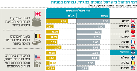 דמי הניהול הממוצעים בקרנות אג"ח בישראל נאמדים ב־0.68% לשנה. שיעור זה נמוך מהממוצע העולמי, הנאמד ב־0.8%, וגבוה רק במעט מהממוצע בארה"ב, הנאמד ב־0.6%. בקרנות המנייתיות דמי הניהול ירדו במידה ניכרת בשנים האחרונות, אך אלה עדיין גבוהים ביחס לשווקים בעולם. דמי הניהול בקרנות אלה בישראל הם 1.64% בממוצע, כמעט כפולים מבמקבילות בארה"ב, אך דומים לדמי הניהול במדינות אירופה כגרמניה, צרפת ואנגליה.