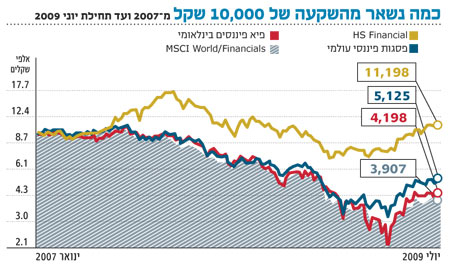 המחצית השנייה של 2008 בשוק ההון עמדה בסימן ענף הפיננסים. הכותרות זעקו על קריסות של בנקים ברחבי העולם, וממשלות נחלצו לעזרת ענקי הפיננסים בניסיון למנוע את התמוטטותם. על רקע זה ביקשנו לבחון את תשואות הקרנות הישראליות המשקיעות בתחום הפיננסי בחו"ל בשנתיים וחצי האחרונות.