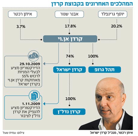קרדן אן.וי - שעם בעלי מניותיה נמנים יוסף גרינפלד (20.2%), אבנר שנור (17.8%) ואיתן רכטר (3.7%) - היא חברת אחזקות החולשת על תחומים שונים באמצעות שורה של חברות בנות.