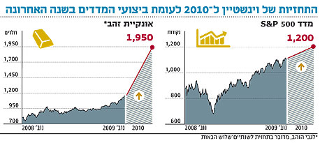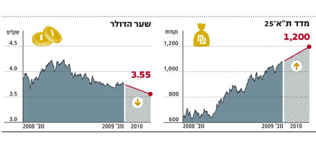 "אני לא צופה נסיגה משמעותית, אבל בפירוש ייתכנו מימושים של 10%–15%, לאו דווקא בחודש ינואר אלא לכל המאוחר עד אמצע 2010. למרות זאת, בהחלט ייתכן שהשערים בסוף השנה יהיו גבוהים מעכשיו, שכן אנחנו נמצאים, כאמור, בדרך מלאת מהמורות. ישנה סבירות גבוהה שמדד S&P 500 (מדד המניות האמריקאי הרחב - ה"ר) יגיע ל־1,200 נקודות בסוף 2010, ולמדד ת"א־25 אני צופה עלייה של 10%–15%.