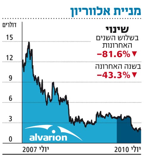 מניית אלווריון חתמה ביום שישי את המסחר בנאסד"ק במחיר של 2.12 דולרים, המשקף נפילה של 43% בהשוואה למחירה בתחילת 2010.