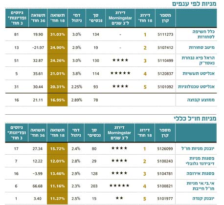 קרנות מניות בחו"ל לפי ענפים רשמו מתחילת השנה את היקף הגיוסים הגבוה ביותר, וגם הצליחו להשיג את התשואות הגבוהות ביותר בקרב קטגוריית קרנות מנייתיות בחו"ל. השיאנית, בניהולה של כלל, השיגה תשואה כפולה מהממוצע בקטגוריה