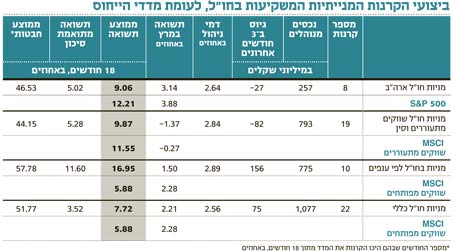 השורה התחתונה: בטווח הקצר, הקרנות המנייתיות הישראליות שמתמחות בהשקעה בחו"ל לא הצליחו להכות את מדד הייחוס, והניבו תשואות נמוכות. עם זאת, בטווח של שלוש השנים האחרונות התמונה שונה: הקרנות השיגו תשואות גבוהות, ופיצו על ההפסדים שנרשמו בשל המשבר.