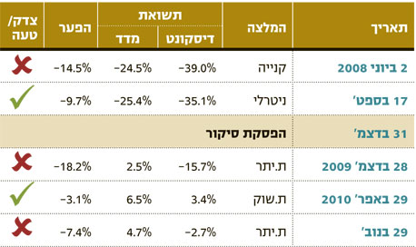 תגובת גלזר: "דיסקונט היתה מניית הבנקים החלשה ביותר, וההתנהגות שלה היתה פחות טובה מהסקטור. זו המניה הכי מאכזבת בשלוש השנים האחרונות, וכל ניסיון להאמין שרמת המחיר הנמוך שבו נסחרה המניה היה מוצדק התברר כטעות. דיסקונט נסחר כיום במכפיל הון של 0.65 ובפער מאוד גדול בהשוואה לבנקים אחרים. אנחנו ממליצים עליה ב'תשואת יתר' מתוך הערכה שהמנכ"ל החדש יתחיל להניע תהליכים להתייעלות הבנק".