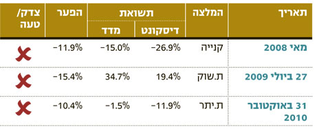 יש לציין כי בפעמים שבן זאב פספס ונתן המלצת "תשואת יתר", המניה אכן הניבה תשואה חיובית יותר מהמדד, אולם לא מספיק כדי שתעמוד בקריטריון "תשואת יתר", כלומר תשואה עודפת של יותר מ־10% ממדד היחס.