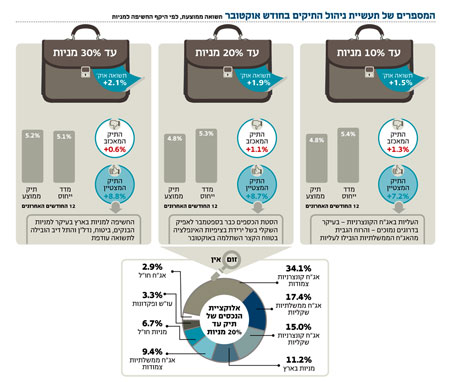תיקים שכללו 30% מניות השיגו את התשואות הגבוהות ביותר באוקטובר. בין המניות שהזניקו את המצטיין: אלוני חץ, גזית גלוב והפועלים