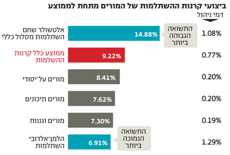 קרן ההשתלמות של המורים והגננות הניבה ב־2012 תשואה של 7.3%, שנמוכה ב־2% ביחס לממוצע הכולל בקרנות ההשתלמות