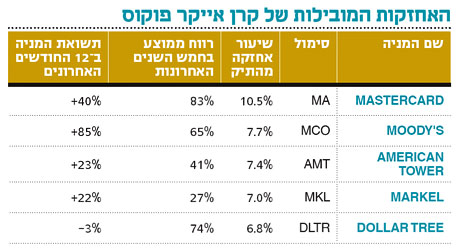 בין החברות הגדולות ניתן למצוא את ויזה ומאסטרקארד, כשהאחרונה היא אחזקתו הגדולה ביותר, ומאז שהונפקה ב־2006 זינק שווייה פי כעשרה. המעמד של ויזה ומאסטרקארד הוא ייחודי - שתי החברות שולטות בשוק שצפוי לצמוח שנים רבות קדימה, והמעבר מתשלומים במזומן לכרטיסי אשראי הוא תהליך ארוך טווח שצפוי להימשך בעתיד הנראה לעין. המעמד הדואופולי שלהן והמודל העסקי שדורש השקעות נמוכות מאפשר להן להשיג צמיחה גבוהה ושולי רווח גבוהים. כך לדוגמה עומדים שולי הרווח הנקי של מאסטרקארד על 37.7% והיא מייצרת תזרים מזומנים חופשי של יותר מ־3 מיליארד דולר. חלק קטן מהתזרים החופשי משולם כדיבידנד לבעלי המניות וחלק משמעותי יותר מושקע חזרה במניות החברה, אייקר סבור שזהו מהלך חכם כי קשה מאוד לחברה למצוא הזדמנויות שיישאו תשואה גבוהה יותר מהשקעה בעסק עצמו.