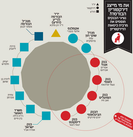 דיקטוריון הבורסה בתל אביב הוא שולחן צפוף ונעים לתאגידים הבנקאיים בישראל. 29 חברים בבורסה בישראל ורק שבעה מקומות לדירקטורים פנימיים בדירקטוריון. מתוך שבעה מקומות אלה תופסים הבנקים חמישה כיסאות: נציגי ארבעת הבנקים הגדולים ונציג בנק אגוד. את שני הכיסאות הנוספים תופסים בתי ההשקעות. על אף קיומם של דירקטורים חיצוניים נוספים רבים בדירקטוריון הבורסה הנתונים גורמים להרמת גבה - האם האינטרסים של כל חברי הבורסה מיוצגים נאמנה כאשר כל כך הרבה בנקים יושבים סביב שולחן אחד? האם חברים שאינם נציגי בנקים לא מעוניינים בייצוג גדול יותר בדירקטוריון? ומי מגן על אינטרס המשקיעים? בחודשים האחרונים מתחוללת דרמה גדולה בבורסה בתל אביב. על רקע התייבשות מחזורי המסחר ומתוך האמונה כי הבורסה היא משאב לאומי הדיח ראש רשות ניירות ערך שמואל האוזר את שני ראשי הבורסה: אסתר לבנון, המנכ"לית, וסם ברונפלד, היו"ר. האם דירקטוריון הבורסה בהרכבו הנוכחי שותף לעמדתו של יו"ר ני"ע?