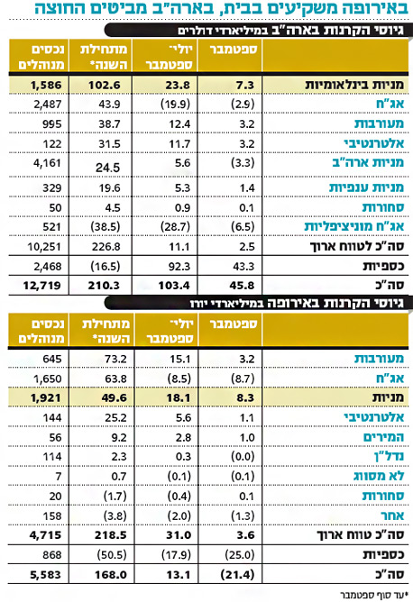 השורה התחתונה: באירופה סבלו קרנות האג"ח מפדיונות כבדים. בארה"ב היו אלה דווקא קרנות המניות שפדו, כשהקרנות הגלובליות כיכבו.