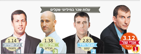 אם יש מנהלים בשוק ההון שמותר להם להוריק מקנאה, אלה חלק ממנהלי תעודות הסל. בעוד מנהלי החברות הגדולות — מנכ"ל קסם אבנר חדד ומנכ"ל תכלית איל סגל — לקחו הביתה עלות שכר של 2.83 מיליון שקל ו־1.38 מיליון שקל בהתאמה, זכה אורי שור, מנכ"ל חברת תעודות הסל הקטנה ביותר, הראל סל, לעלות שכר של 3.12 מיליון שקל. גיל שפירא, מנכ"ל פסגות, החברה השלישית בגודלה, הוא בעל השכר הצנוע בתעשייה, 1.14 מיליון שקל בלבד. כיצד קרה שמנהלים של חברות תעודות סל המנהלות כל אחת 32–35 מיליארד שקל, השתכרו פחות מהמנכ"ל של חברה המנהלת נכסים בהיקף של 15.3 מיליארד שקל?