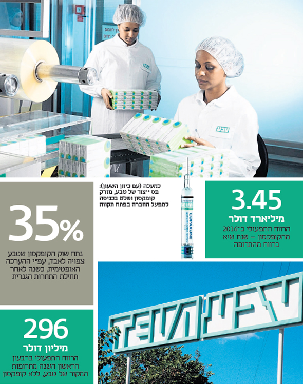 ברבעון הראשון של השנה ירדו מעט הכנסות הקופקסון ל־970 מיליון דולר, והרווח התפעולי ממנה פחת ל־742 מיליון דולר. טבע מנמקת את הירידה בהצטברות מלאים בארה"ב ברבעון הרביעי של 2016, ערב העלאת מחיר הקופקסון בארה"ב בתחילת 2017. בתחילת הרבעון השני גברה התחרות בין התרופות לטרשת נפוצה, לאחר שהתרופה Ocrevus של Roche אושרה לשיווק בארה"ב. זו השיגה יעילות רבה בניסויים להפחתת התקדמות המחלה, ותופעות הלוואי שלה מתונות. עם זאת, במאי דווח על מקרה ראשון של PML (מחלה נדירה ולעתים קרובות קטלנית, הפוגעת במוח. מופיעה לפעמים בעקבות נטילת תרופות לטרשת נפוצה) בחולה שנטל את התרופה, אך כיוון שהטיפול החל רק באפריל, לאחר שלוש שנים של טיפול בתרופה טיסברי, סביר שהאשמה אינה ב־Ocervus. תרופה זו ניתנת בעירוי פעם בחצי שנה, כך שהיא נוחה ממרבית התרופות הקיימות. לכן יש סיכוי טוב שהיא תתפוס נתח שוק גבוה בקרב חולי טרשת נפוצה, בעיקר חולים חדשים וכאלה שהטיפול הנוכחי שלהם אינו מונע את הידרדרות המחלה. התגברות התחרות יכולה לצמצם בהדרגה את נתח השוק של הקופקסון.
