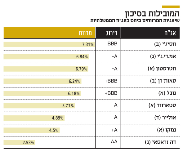 ככלל, התפתחות התשואות של כלל סדרות האג"ח של חברות הנדל"ן האמריקאיות זינקה באופן מעורר דאגה. מאז פברואר האחרון עלתה התשואה השנתית הממוצעת והכוללת על איגרות החוב מ־3.6% בממוצע ל־5.4% בממוצע. ההפרש בין התשואה כיום למינימום שנרשם בתקופה הזאת נאמד בהפרשי תשואה של 1.72%, שיעור גבוה למדי בתקופה של כמה חודשים. הזינוק החד ביותר במרווחי התשואה היה באג"ח מקבוצת ה־A, שם חלה קפיצה של 2.24% בתשואה ביחס למינימום שנרשם בפברואר האחרון, לתשואה שנתית של 5.5%. השוואת המרווח של אג"ח חברות הנדל"ן האמריקאיות למרווח שבו נסחרות האג"ח של מקבילותיהן הישראליות, על פני מח"מים משתנים, מלמדת שהאמריקאיות מוענשות בדרך כלל באופן ברור והמרווח שלהן מעל האג"ח הממשלתיות גבוה במידה רבה במיוחד בדירוגים הגבוהים. כך למשל בדירוג AA יש פער של 2.5%-2% על פני המח"מ הרלוונטי עבורן שנמצא בין 4.5 לקצת מעל ל־5 שנים.