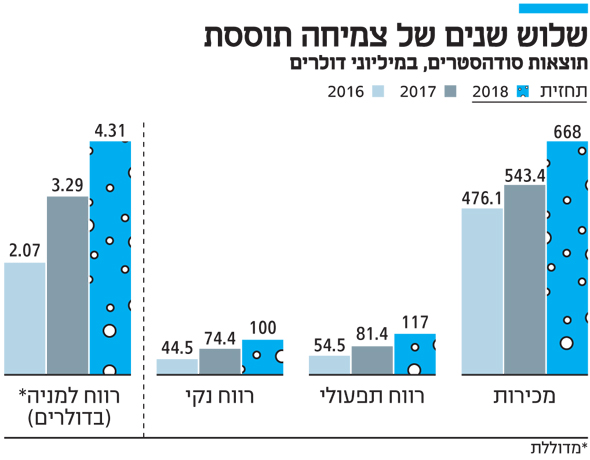 לאחר שלוש שנים של צמיחה חדה בתוצאות, חברת סודהסטרים דיווחה אתמול (ב') כי תימכר לענקית המזון העולמית פפסיקו תמורת 3.2 מיליארד דולר, מחיר הגבוה ב־10.9% ממחיר מניית סודהסטרים בנעילת המסחר בארה"ב ביום שישי.