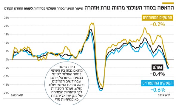 במציאות זו הפוקוס של המשקיעים עובר לבחירה סלקטיבית של מניות ולכן מדובר בסביבת השקעות מאתגרת יותר למשקיע הפשוט. בהקשר של האג"ח והפוטנציאל לירידת תשואות נוספת, הרי שהודעת הריבית של בנק ישראל בשבוע שעבר התקבלה בחיוב על ידי המשקיעים. חטיבת המחקר הורידה את תחזית הצמיחה של המשק לשנה זו ב־0.2% לרמה של 3.2% ואת התחזית ל־2020 השאירה ללא שינוי. מדובר בתחזית שמרחיקה את העלאת הריבית בישראל מבלי להפחיד את המשקיעים שהמשק נמצא לפני האטה משמעותית. נקודה חשובה שכן אמורה להטריד את בנק ישראל היא ההאטה בסחר העולמי שהחריפה בחודשים האחרונים, והיא כוללת גם את המשקים המתעוררים.