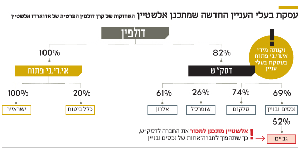 גב ים, זרוע הנדל"ן של אי.די.בי בישראל, היא הנכס החזק ביותר של החברה כיום ונסחרת בשווי 4 מיליארד שקל. נכסים ובניין, שבה מחזיקה דסק"ש ב־69% מהמניות, מחזיקה ב־52% ממניות גב ים, בשווי 2.1 מיליארד שקל. גב ים רשומה בספרי נכסים ובניין בשווי נמוך בהרבה ומכירה שלה תניב רווח הון של קרוב למיליארד שקל לקבוצה. אבל יותר חשוב, היא תסייע לצמצם את שכבות הפירמידה לשתי שכבות, שכן גב ים תהפוך לחברה אחות של נכסים ובניין ותחת דסק"ש. עיסקה כזו אמורה להיות בהיקף של 2.2־2.3 מיליארד שקל לפחות, סכומים שדסק"ש איננה יכולה להוציא במצבה הנוכחי. עיסקה כזו היתה יכולה להתבצע בקלות רבה יותר במידה ואלשטיין היה מצליח למחוק את נכסים ובניין מהבורסה, משום שאז האישור שלה היה מגיע לדירקטוריון נכסים ובניין. באין מחיקה כזו ייאלץ אלשטיין לקבל את הסכמתם של בעלי מניות המיעוט בנכסים ובניין - ואלה לא ירצו שנכס כמו גב ים יעבור לידי דסק"ש.