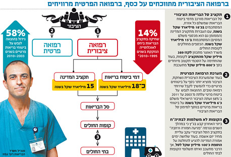 הכאוס התקציבי במערכת הבריאות הוא אחת הסיבות לכך שמספר פוליסות ביטוחי הבריאות הפרטיים גדל בין 2002 ל־2011 ב־90%. הציבור מעביר יותר ויותר כסף מכיסו אל חברות הביטוח, שהכניסו בשנה שעברה כ־6 מיליארד שקל מהסוגים השונים של ביטוחי הבריאות והביטוחים המשלימים של קופות החולים.