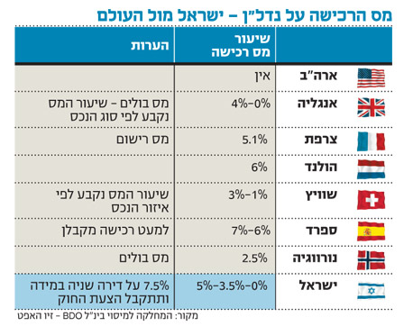 ישראל עשויה להפוך למובילה בשיעור המס על רכישת דירה שנייה