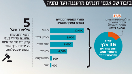 שטחים עצומים המוגדרים כ"אזורי נופש מטרופוליניים" תקועים מאז 2003, אף שהיו יכולים לפתור את מצוקת הדיור של רעננה, ראשל"צ, נתניה ורחובות. הרשויות מגלגלות ביניהן את האחריות לנושא, ובעלי הקרקעות הגישו תביעות על עיכוב השטחים ב־5 מיליארד שקל. בקרוב יכריע משרד הפנים מה יעלה בגורל הקרקעות
