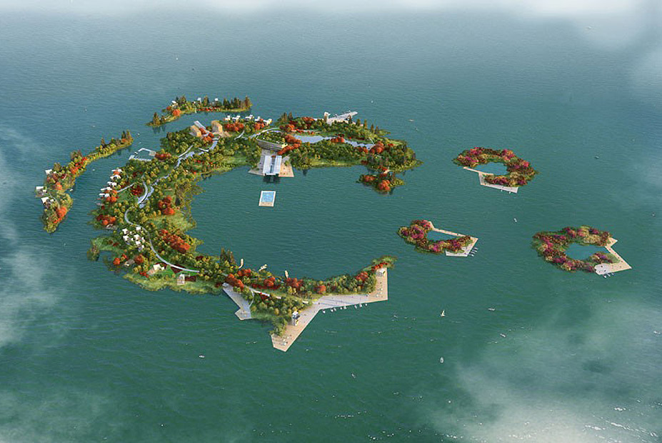 בתת קטגוריה פרויקטים עתידיים ניסיוניים זכה במקום הראשון אי מלאכותי שעתיד להיבנות באגם דונגיאן בנינגבו שבסין