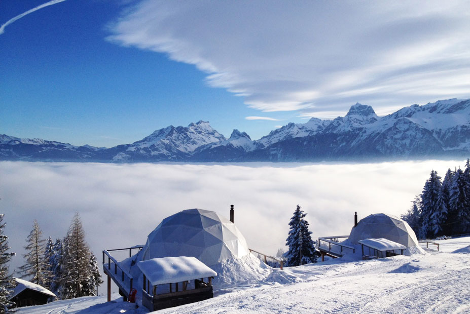 מלון ווייטפוד, לה סרנייר, שווייץ. מלון זה ניצב בצילם של האלפים של ברן. האורחים מקבלים בקבלה את המפתחות לחדרם הנמצא במרחק מה. לחדרים דמויי הכיפה יכולים האורחים להגיע בטיול רגלי, באמצעות מזחלת כלבים או בסקי. המלון מציע מסלולי סקי פרטיים, מסלולי הליכה בנעלי שלג וטיפוס הרים. המלון הוא אקולוגי ובסוף עונת הסקי, מפרקים הבעלים את ביתני האירוח
