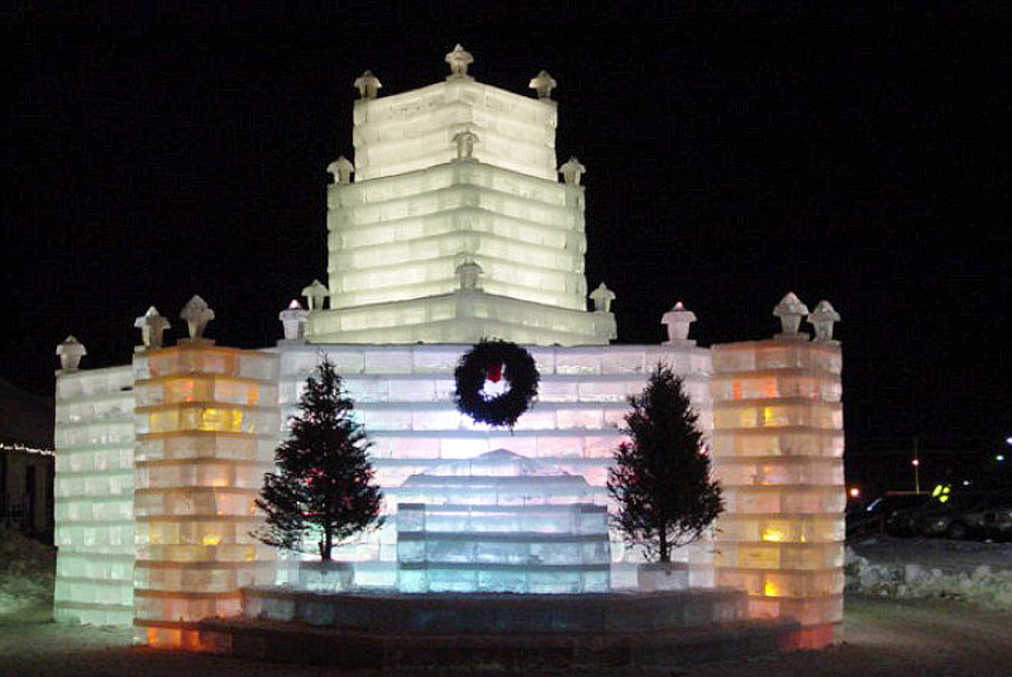 איגל ריבר, ויסקונסין, ארה"ב: בכל דצמבר מתנדבים מהעיר איגל ריבר משקיעים שעות לחתוך קרוב ל-3,000 גושי קרח הלקוחים מאגם מקומי, המיועדים לבניית ארמון קרח עצום. המסורת החלה בשנות ה-20 של המאה הקודמת, וחלק מהציוד המקורי עדיין בשימוש
