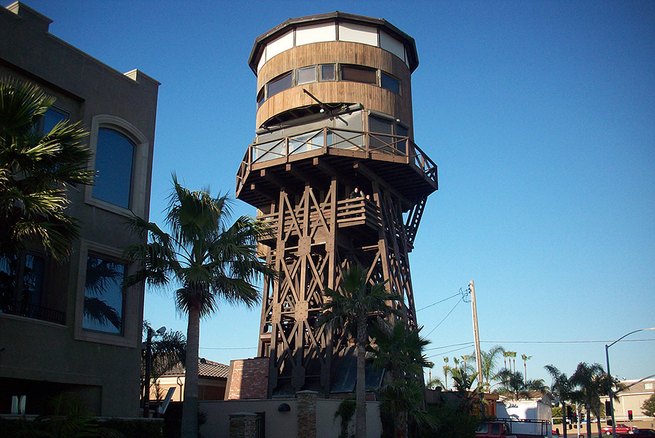 מגדל המים של האנטינגטון ביץ', ארה"ב: מגדל המים הזה בקליפורניה נבנה במאה ה-19 על מנת לספק מים לרכבות קיטור. הוא פעל עד 1974 ובשנות ה-80 הומר לבית לאחר שהוסר מיכל המים. הוא שימש מאז לעיתים כבית למשפחות, אך לרוב הושכר כבית קיט יוקרתי. הדיירים עולים ארבע קומות במעלית לפני שמגיעים לחלל המגורים שמתפרש על פני שלוש קומות, ומספק נופים מרשימים של החופים הסובבים. גובה המגדל: 27 מטרים