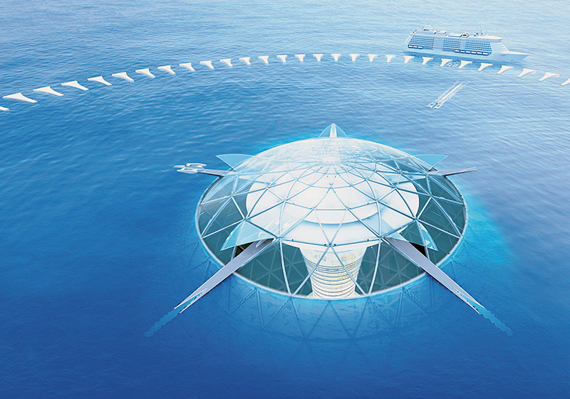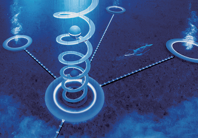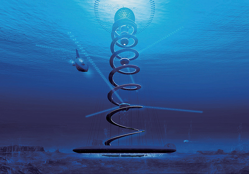 לפי שרטוט שפורסם, המבנה השאפתני יחולק לשלושה אזורים שונים. כדור צף בקוטר של 500 מטרים, שימוקם מיד מתחת לפני השטח של הים, ויכלול אזורי מסחר ומגורים, וכן בתי מלון. המיכל יחובר למסלול ספירלי באורך 15 ק"מ, שיוביל לרצפת האוקיינוס, 4-3 ק"מ מתחת לפני הים. במקום זה, המדענים יחפשו דרכים לגילוי משאבים מקרקעית הים.