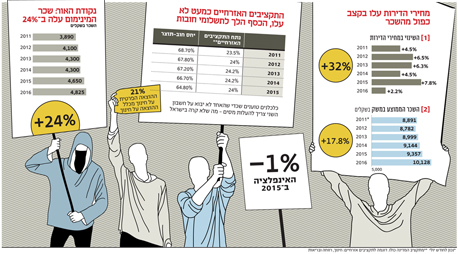אפשר להתווכח על הישגיה של מחאת רוטשילד, אבל מה שבטוח הוא שגם אם היא שינתה את השיח הכלכלי־החברתי בישראל, במספרים, השינוי רחוק מלבוא לידי ביטוי. כך, לדוגמה, מאז יולי 2011, מחירי הדירות - שהיו הסיבה הראשונית להצבת האוהלים בשדרות רוטשלד בתל־אביב - עלו ב־32% בממוצע. זאת בזמן שהשכר של העובד הישראלי הממוצע עלה ב־17.8% בלבד.