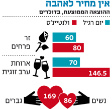 האוהבים האמריקאים יוציאו 17.6 מיליארד דולר על ארוחות ערב, פרחים ושוקולדים - עלייה של 8.5% לעומת 2011