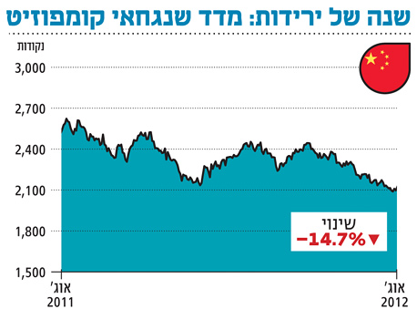 שוק המניות הסיני רשם השנה את הביצועים הגרועים ביותר מבין הכלכלות המתפתחות הגדולות. מדד שנגחאי קומפוזיט ירד ב־13% מאז מרץ אחרי עליות בתחילת השנה, ובסך הכל איבד מערכו כמעט 3% מאז ינואר, לעומת עליות בשוקי המניות של הודו וברזיל. הירידות הן סימן לחוסר אמון של המשקיעים בסין בחוסנה של הכלכלה על רקע המשבר המתמשך באירופה, ההאטה ביצוא והעליות במחירי חומרי הגלם.