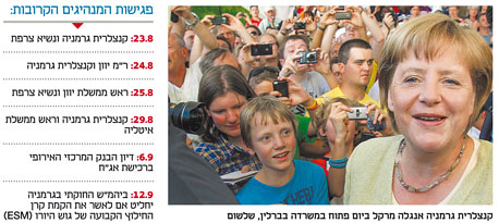 נשיא צרפת פרנסואה הולנד וקנצלרית גרמניה אנגלה מרקל ייפגשו ביום חמישי בברלין וינסו לגשר על המחלוקות ביניהם, בין היתר לגבי דרכי ההתמודדות עם החוב התופח של יוון. 17 החברות בגוש היורו ממתינות לדו"ח על התקדמותה של יוון ביישום תוכנית הצנע והקיצוצים שהיו התנאי לקבלת שתי חבילות חילוץ אדירות, שיתפרסם בחודש הבא.
