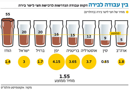 בארה"ב צריך לעבוד 5 דקות כדי לקנות בירה, כמה בישראל?