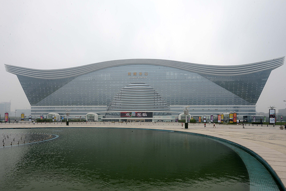 מבנה. ניו סנצ'ורי גלובל סנטר בסין נפתח לעסקים ביולי 2013. זהו המבנה הגדול ביותר בעולם מעשה ידי אדם. המבנה, שבנייתו ארכה שלוש שנים, כולל אולם קולנוע IMAX עם 14 מסכים, זירת החלקה על הקרח, גדולה מספיק כדי לארח תחרויות בינלאומיות רשמיות, שחזור מדויק של כפר לחופי הים התיכון ופארק מים. בתוך המבנה אפשר להכניס 20 פעמים את בית האופרה בסידני, או למעלה מ-300 מגרשי כדורגל או פשוט את מונאקו